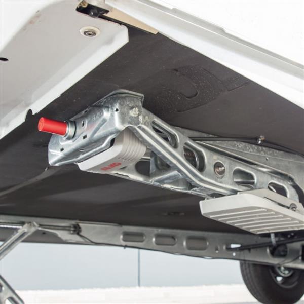 Dankzij de hoogwaardige elektronische aandrijving kunnen alle 4 steunen via een druk op de knop worden uitgeschoven en nauwkeurig worden ingesteld. Het systeem is geschikt voor caravans tot 2,5 ton en biedt dankzij thermisch verzinkte metalen onderdelen langdurige corrosiebescherming. De elektrische aandrijving wordt bovendien door een kunststof afdekking beschermd.