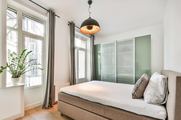De masterbedroom is gelegen aan de achterzijde van de woning en heeft een balkon gelegen op het oosten. De grote kastenwand zorgt voor voldoende opbergruimte.