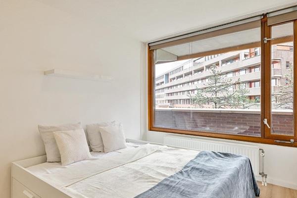 Het appartement beschikt over twee ruime slaapkamers, beide slaapkamers grenzen aan de binnenplaats van het complex. De onlangs gerenoveerde badkamer is voorzien van een ligbad, regendouche en luxe wastafelmeubel. Aan de hal grenzen tevens het aparte toilet en de wasruimte. Voor het opbergen van uw jassen en schoenen kunt u gebruik maken van de extra inpandige berging.