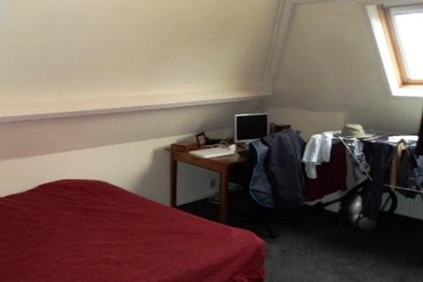 Super compleet appartement op de top etage op de van Swietenstraat trap naar de tweede etage trap naar top etage ruime lichte woonkamer met tapijt en veel dakramen nette zijkeuken met kookplaat en diverse apparatuur nette achterslaapkamer met groot raam douche en wastafel,