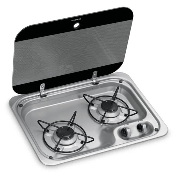 Tweepits gaskookplaat met glazen deksel, 460x335mm zonder 12V ontsteking.