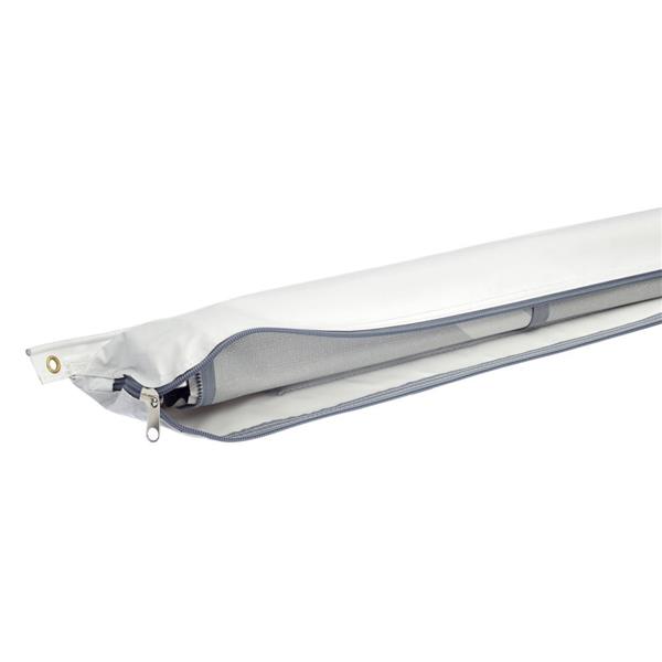 Trek de zakluifel door de bestaande voortentrail van je caravan of camper. Eenmaal gemonteerd open je de luifelzak en rol je de luifel uit en plaats je de twee stevige voorpoten en twee liggers – zo eenvoudig is het.