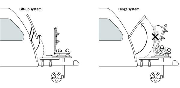 Op deze manier kunnen ook de disselbakken met de draai naar boven geopend worden.