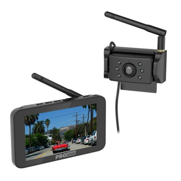 De camera wordt automatisch geactiveerd bij achteruitrijden, heeft een ingebouwde 5 inch LCD display met afstandsindicatie en beschikt over 6-IR LED's voor beter nachtzicht en een digitale draadloze zender van 2.4 Ghz. De camera beschikt over een 1920x1080 Full HD display wat zorgt voor een zeer duidelijk en strak beeld.