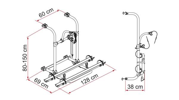 De Carry-Bike Pro is een telescopisch uitschuifbare fietsendrager voor op de achterwand van een camper en is voorzien van een in hoogte verstelbaar wandframe wat een betere stabiliteit biedt.