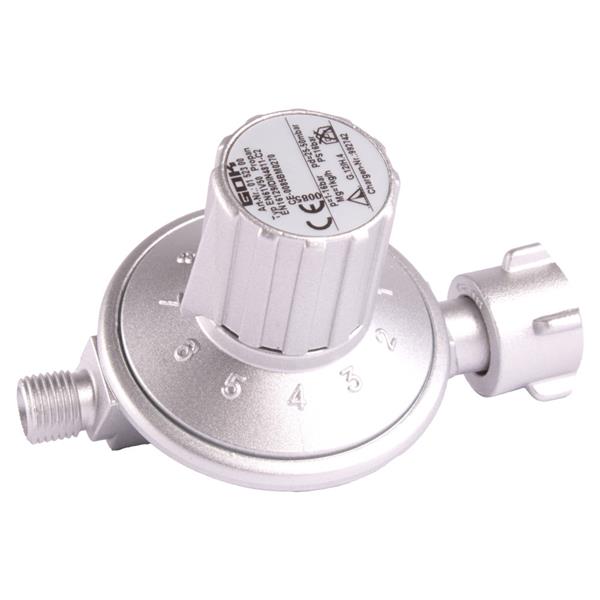 Regelaar waarbij de gasdruk in 11 standen te regelen is. Van werkdruk 25 t/m 50mb.