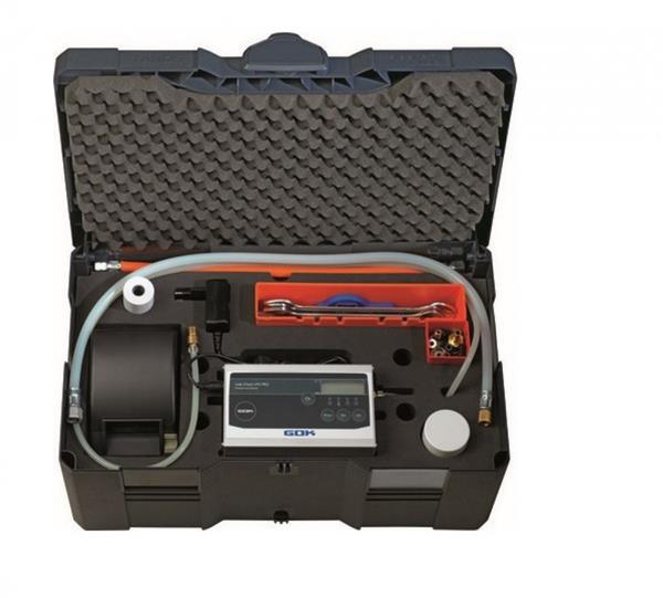 Koffer met alle benodigde montagedelen voor de lektest in LPG-systemen in recreatievoertuigen volgens DVGW-werkblad G 607, ÖVGW-werkblad G 107 en EN 1949 en in kleine vaartuigen volgens DVGW-werkblad G 608 en EN ISO 10239.