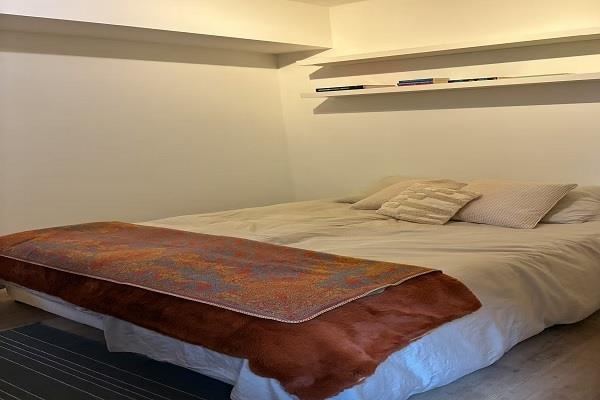 Deze slaapkamer heeft een tweepersoonsbed (queensize), een commode en is het meest geschikt voor iemand die behoefte heeft aan een grotere, privéruimte. Er is ook een extra kamer in het appartement die momenteel als kantoor wordt gebruikt en die door de twee bewoners gedeeld kan worden.