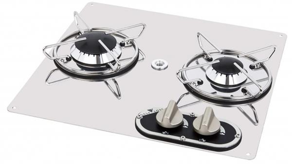 RVS platte kookplaat. Uitgerust met 2 branders.