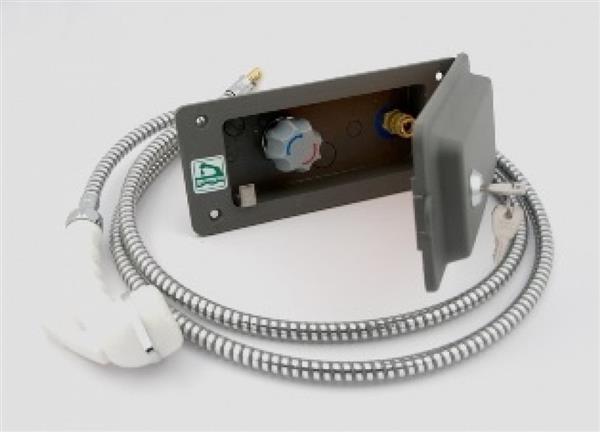 Inbouwdoos voorzien van voormenger inclusief doucheslang en douchekop Charisma. Deksel hoogte 28 mm. Deksel is tevens afsluitbaar door slot. Achterzijde is voorzien van een slangaansluiting 8-10 mm.. Buitendouche aansluiting voor warmwater met voormenger Meer informatie nodig? Neem contact met ons op, we helpen u graag!