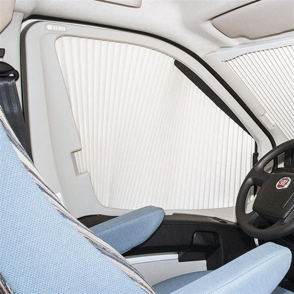 Remifront 4 bestaat uit een geplisseerd voorpaneel of zijpaneel en maakt de cabine bijna volledig donker. Tevens bieden ze verkoeling in de zomer en blijft de cabine beter geïsoleerd in de winter.