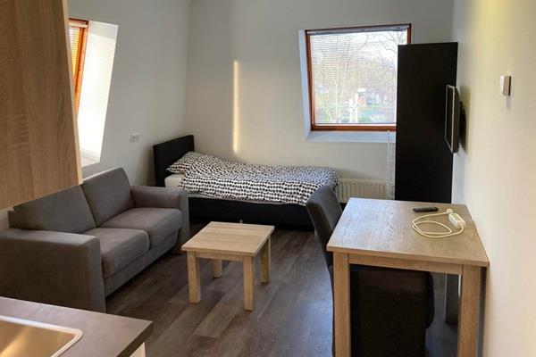 Indeling: Deze studio biedt een comfortabele leefruimte, perfect voor tijdelijk wonen. De studio is voorzien van een eettafel, een gezellige bank, een televisie, een bed en een kledingkast, zodat je je snel thuis zult voelen. De eigen keuken is uitgerust met koelkast, magnetron een kookplaat. De badkamer is volledig ingericht met douche, toilet, wastafel, spiegel en opbergkastje voor extra bergruimte.