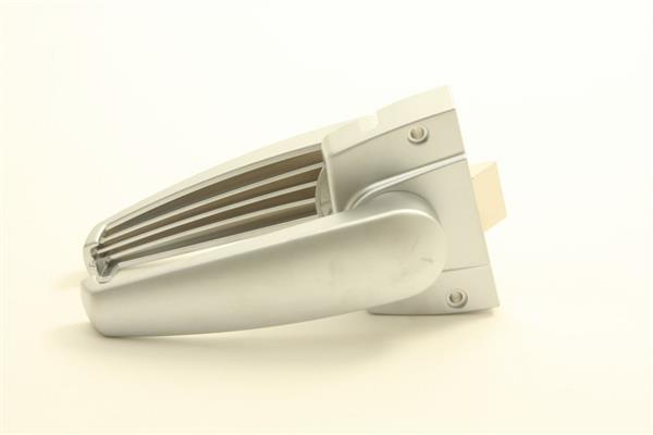 Een vergrendelingsmechanisme voor toiletruimtes met een afwerking in chroom.