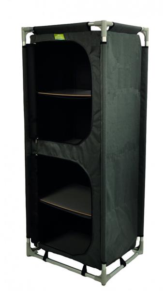 Deze ViaMondo kast heeft een stevig aluminium frame met 4 legplanken en 2 oprolbare deurpanelen.