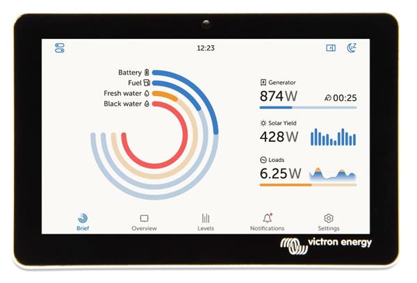 Verbind de Cerbo GX simpelweg met een kabel, het zeer dunne waterdichte design en eenvoudige installatie zorgen voor veel flexibiliteit bij het creëren van een schoon dashboard.